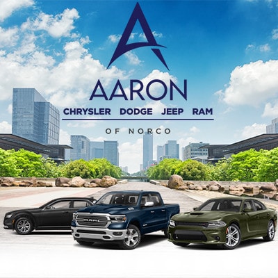 Aaron Chrysler Dodge Jeep RAM of Norco is proud to present our customers with a wide selection of new and pre-owned models. Let us know about the standard features, options, and accessories you want for your new or used car whether it's a midsize sedan, family SUV, or pickup truck you're interested in. Take a look at the new Jeep Gladiator or used Jeep Wrangler models we have in our inventory. Aaron Chrysler Dodge Jeep RAM of Norco wants to help you in making sure you get the best experience as a new or recurring customer. Shop Aaron Chrysler Dodge Jeep RAM of Norco in person, online, or call us at 888-509-2885 to find the best new or used car for you!Â