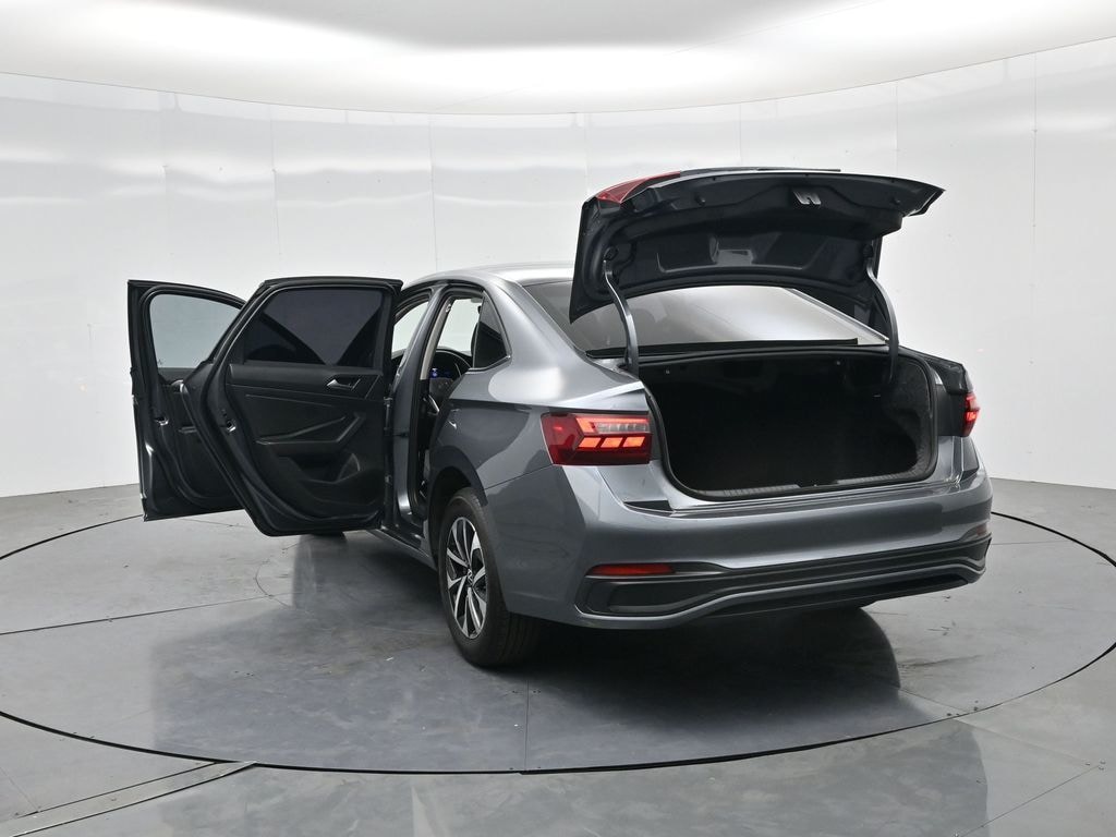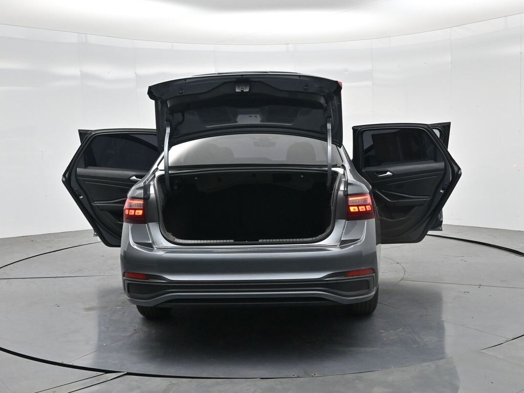 The interior of this Jetta is equally impressive, with cloth upholstery, a leather-wrapped steering wheel, and an intuitive infotainment system with a 6.5-inch touchscreen display. The split-folding rear seats provide flexibility for transporting larger items, while the heavy-duty trunk liner and cargo blocks ensure your belongings stay secure.